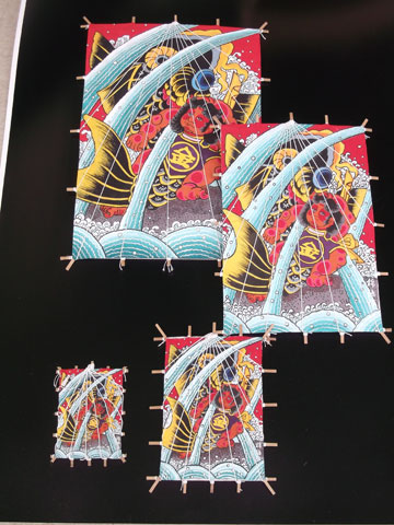錦絵和凧は一点づつ丁寧に手描きで仕上げました。金太郎や牛若丸、義経と弁慶武将を題材に全15絵柄各4サイズのご用意です。